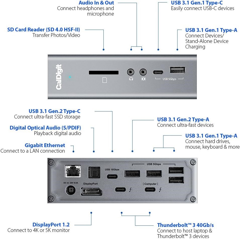 The CalDigit TS3 Plus Thunderbolt 3 Dock has long been recognized as one of the most powerful and reliable docking stations for both Mac and PC users. Built with professionals and power users in mind, this dock expands a single Thunderbolt 3 or Thunderbolt 4 port into a comprehensive workstation hub with an impressive array of connectivity options.