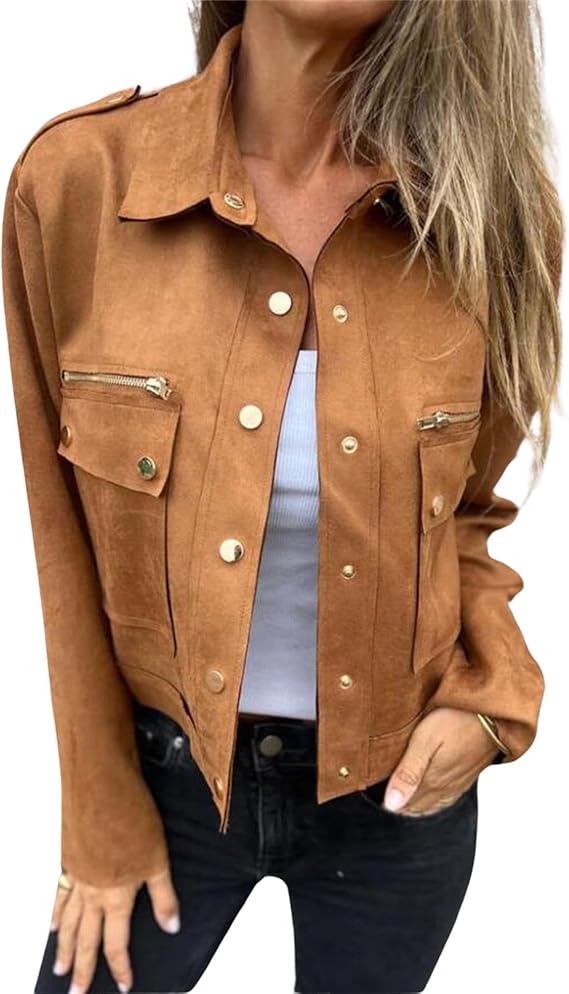 The UTCoco Women’s Cropped Suede Leather Jacket is a stylish, affordable, and versatile wardrobe essential for women who want to embrace a chic, moto-inspired look without the bulk of traditional leather. Its cropped silhouette pairs effortlessly with modern fashion trends, while the suede-like finish adds a soft, sophisticated touch.