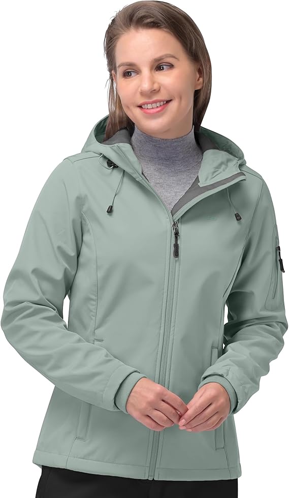 33,000ft Women’s Softshell Jacket, Fleece Lined Warm Jacket Light Hooded Windproof Coat for Outdoor Hiking